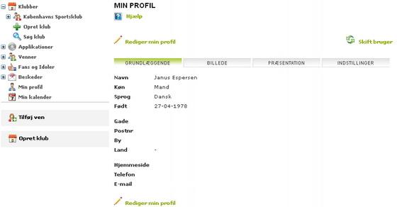 Her kan du se din kalender, som både indeholder events for din klub, samt personlige events.